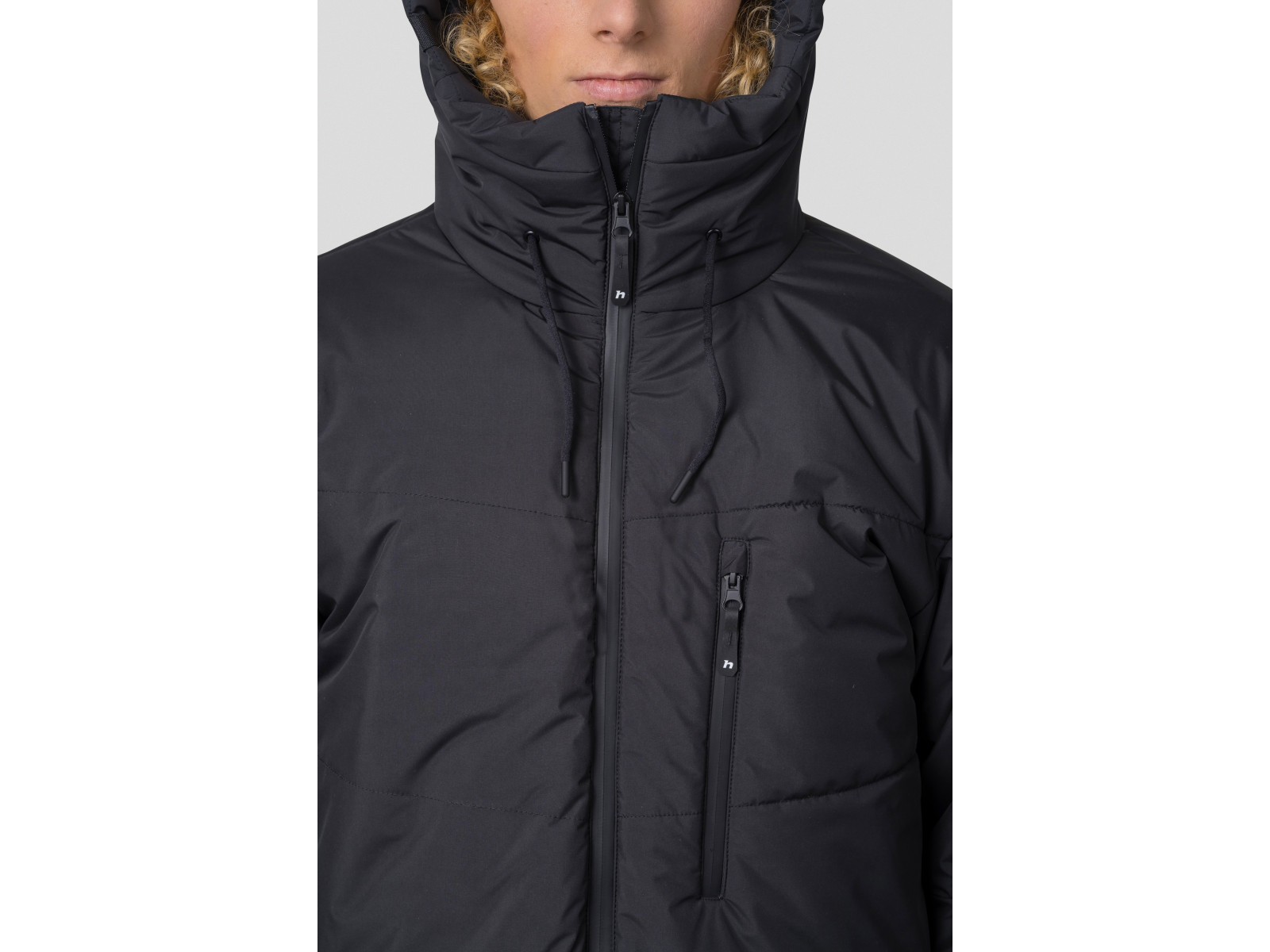 Chamber filled with feather / Hood trimming by elastication / Main pocket with zipper / Main nylon zipper / Transport case / 100