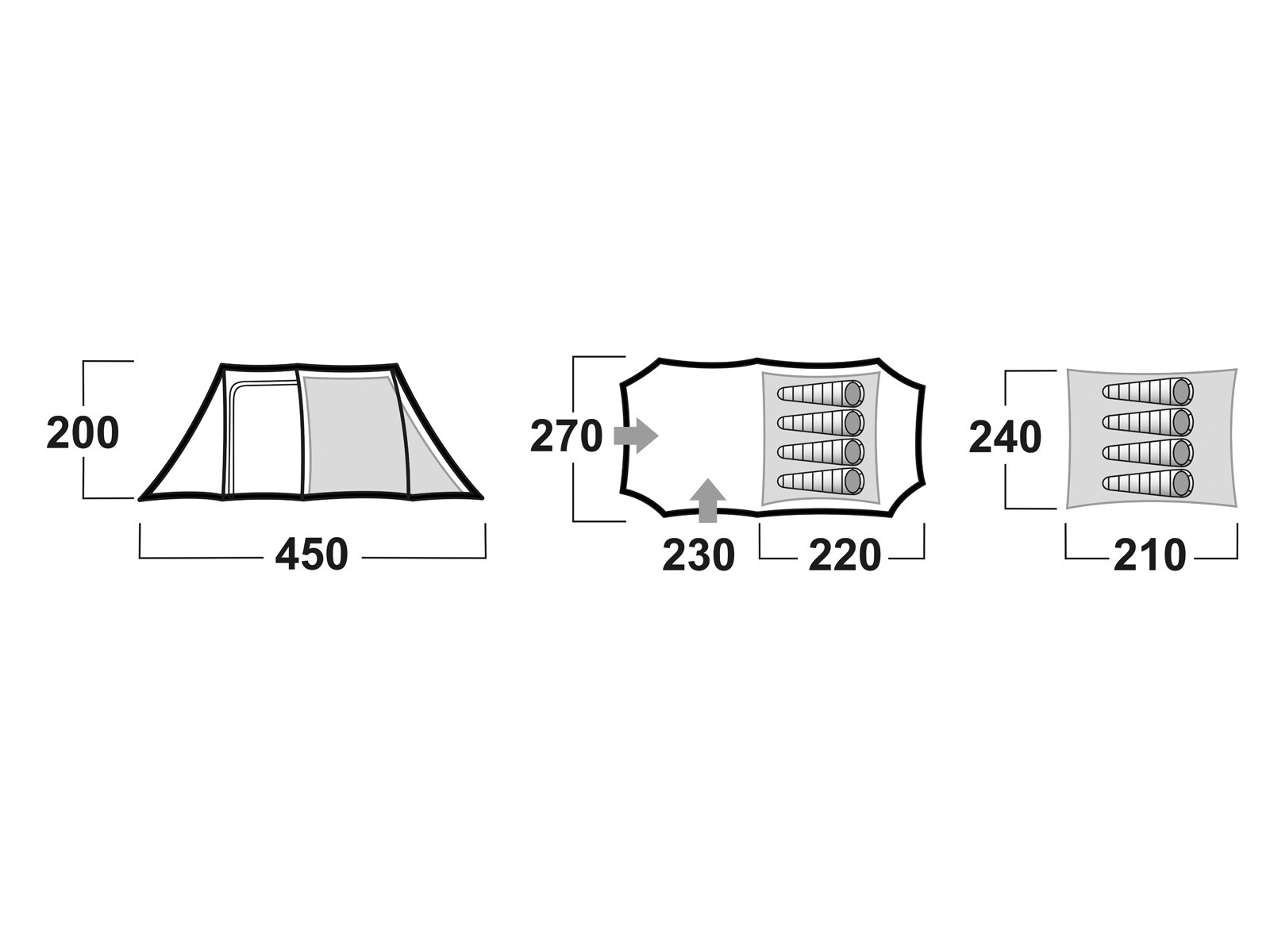 Komfortabla telts, kura būs lieliski piemērota 4 cilvēkiem, tā noderēs gan dodoties pārgājienos, gan laivu braucienos. Teltij ir viena ieeja un liela priekšnama telpa ar ieejām gan no sāna, gan priekšējās daļas, telts stabilitāti nodrošina trīs karkasu veidojošie stieņi, iestrādātas divas atveres ventilācijas nodrošināšanai, kā arī papildus atvere telts...